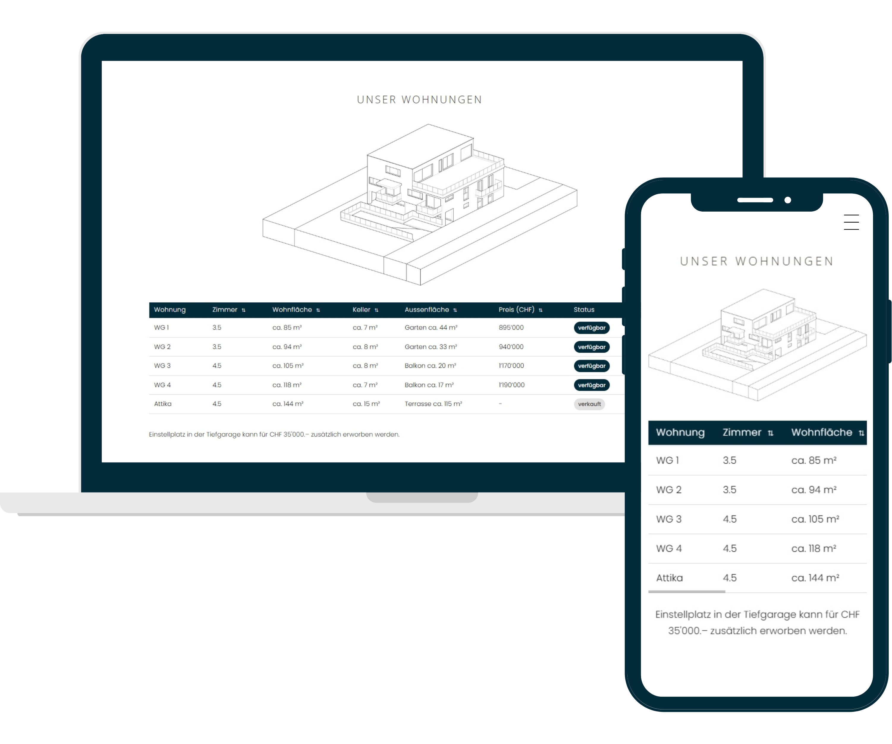 Wohnungen werden nicht nur gelistet, sondern strukturiert erlebbar gemacht. Durch intelligente Sortierung und visuelle Rückmeldung entsteht Orientierung in Echtzeit. Einheiten lassen sich vergleichen, filtern und unmittelbar erfassen klar, verständlich und verkaufsnah umgesetzt.